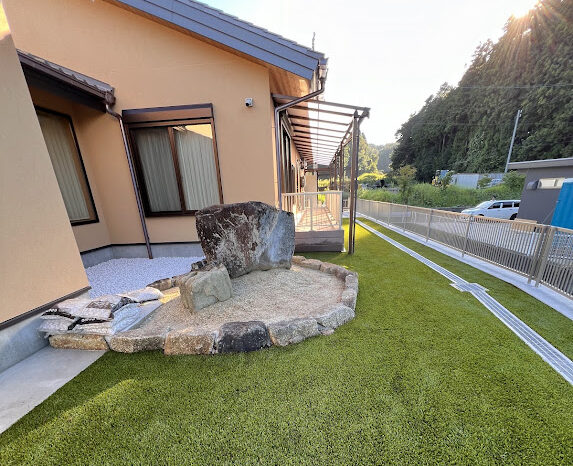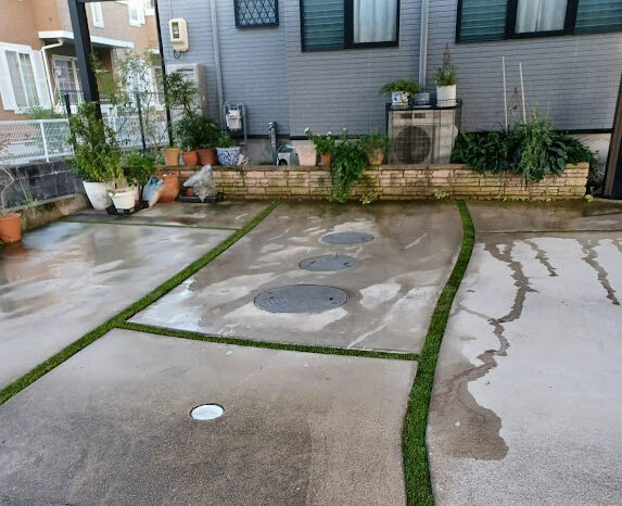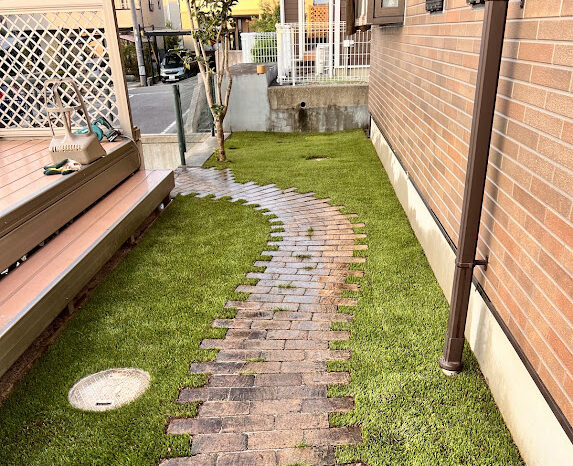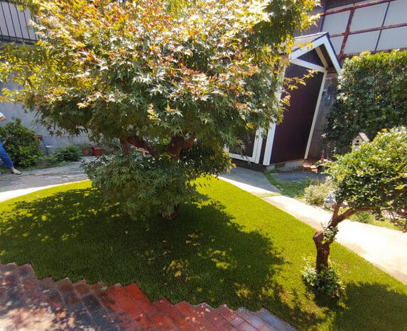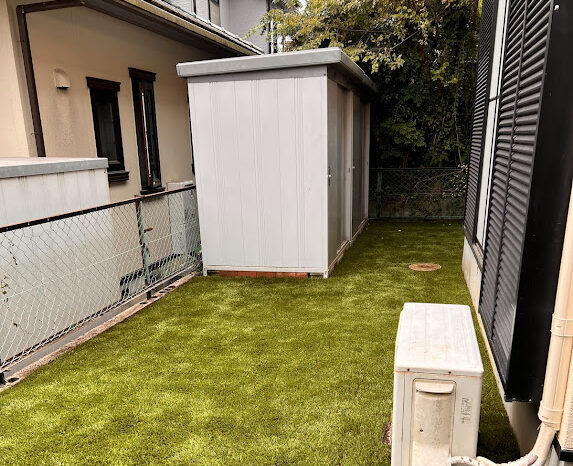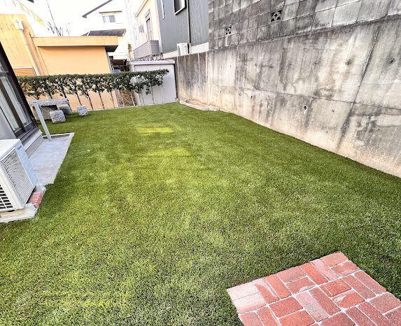 近くに大きな公園があり野鳥がたくさん生息している影響でフン公害とフンに混じる雑草の種に悩まされていました。毎年、丁寧に雑草処理しても半年も経たず雑草に覆われていました。今回は環境芝の雑草対策力と消臭効果に期待され導入頂きました。環境芝はじつは雑草対策だけで無く、自社で開発したオリジナル充填材(D-rey chip)が消臭効果も発揮します。ワンちゃんが環境芝で粗相しても水を流すだけでニオイが消えます。