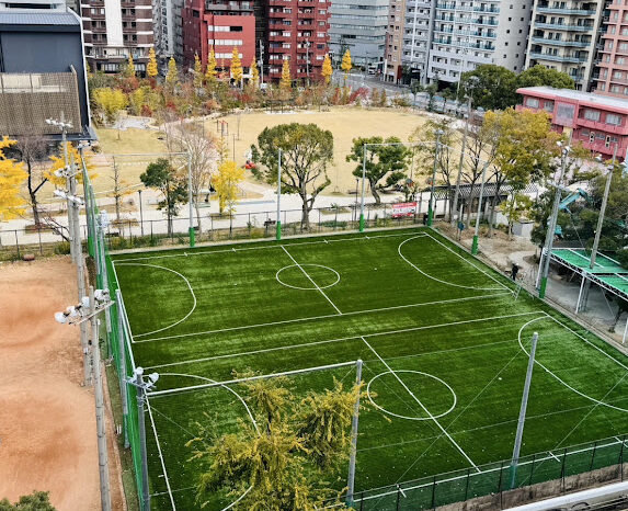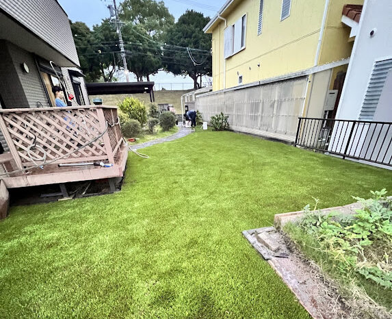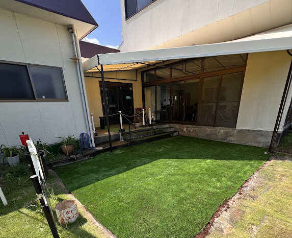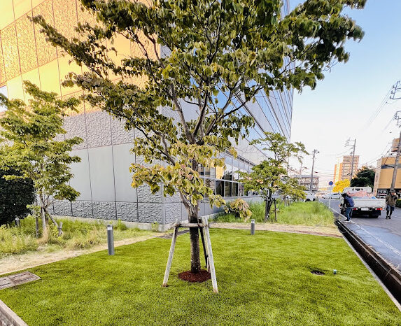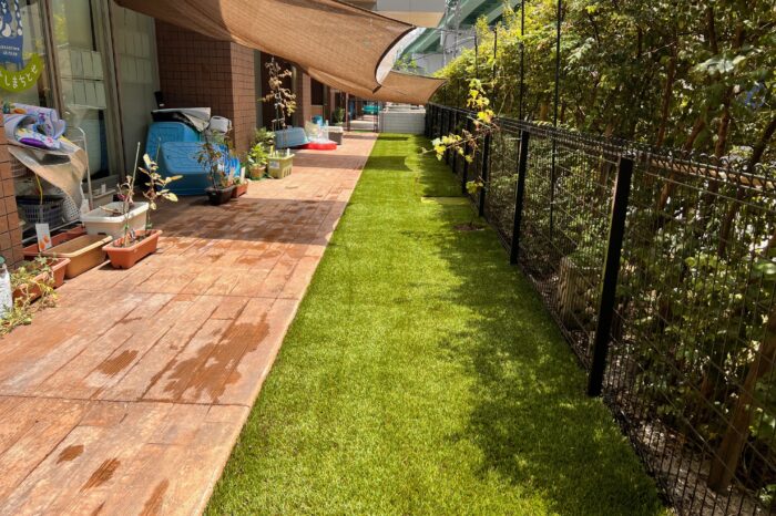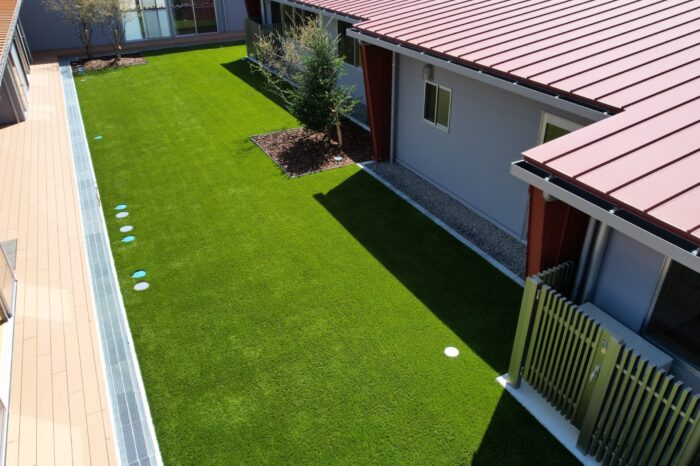 ささしまライブの中にある「ささしまちとせ保育園」の園庭に環境芝を敷設しました。もとは天然芝でしたが元気な子供たちの活動に耐え切れず枯れてしまい環境芝の張替えを決めて頂きました。
