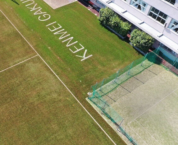 賢明学院のサッカーグラウンドに競技用の環境芝を敷設しました。耐久性は従来通り。また、充填材には危険なゴムチップは使用せず、弊社オリジナルの充填材を使用しています。茶色に見える部分は充填材です。その為、真夏も従来の人工芝グラウンドの様に暑くならず選手皆さんの健康と安全を守ります。