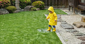 天然素材の充填材と砂は、水をただ溜め込むのではなく、地面へと自然に導く役割も担っています。環境芝は、吸水性と排水性のバランスを考えた構造により、水たまりができにくい足元を実現しています。雨の多い日本の気候を前提に、地面に負担をかけず、暮らしの中で使い続けられる設計です。