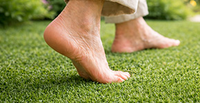 環境芝では、天然素材の充填材と砂を組み合わせることで、水分を保持しやすい構造をつくっています。含まれた水分は、蒸発する際に気化熱を生み、表面温度の上昇をやわらかく抑えます。人工的に冷やすのではなく、自然の仕組みを活かして快適さを保つこと。それが、私たちの考える環境ファーストです。